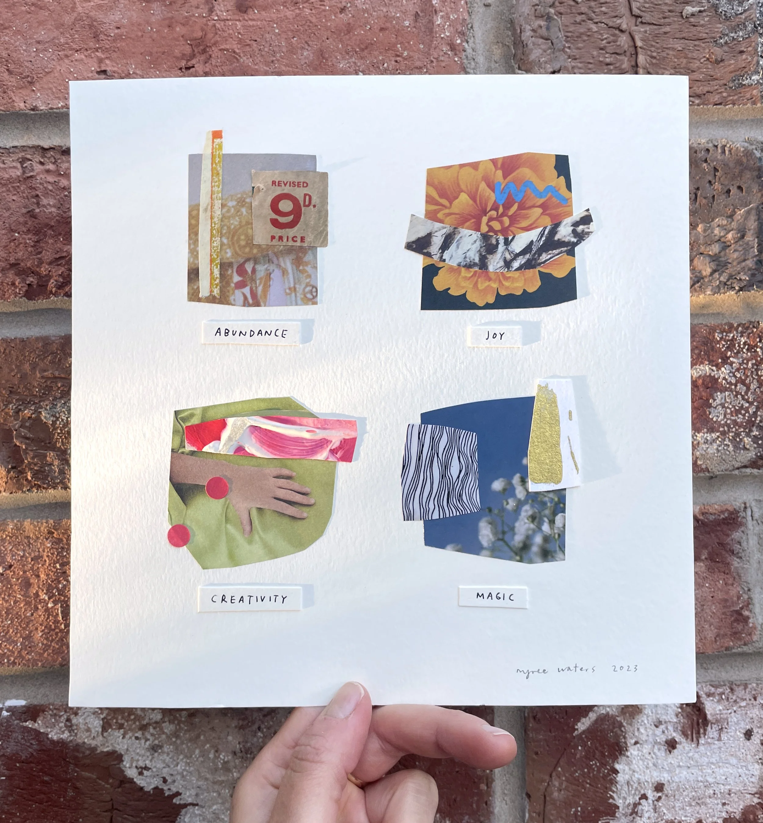 each one is made up of wishes chosen intuitively for the person / couple + a mini collage to symbolise the feeling.